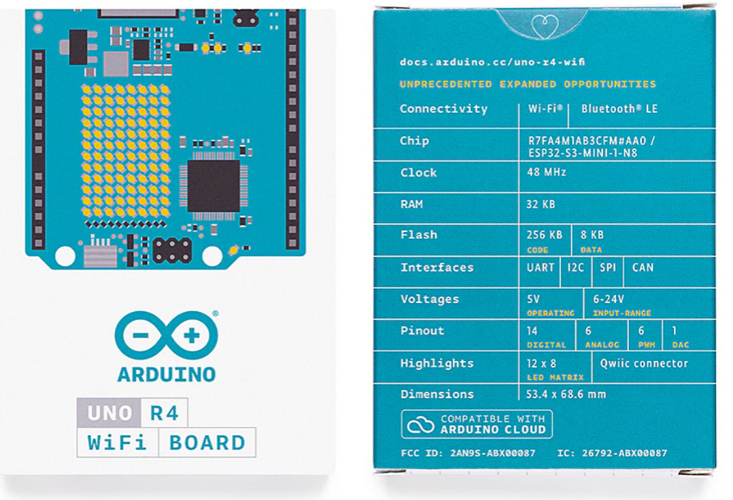 The Arduino UNO R4 is a powerful Wi-Fi and Bluetooth-enabled board featuring the Renesas RA4M1, ESP32-S3, USB-C, CAN, DAC, OP AMP, Qwiic connector, and a 12×8 LED matrix, making it ideal for IoT and advanced prototyping.